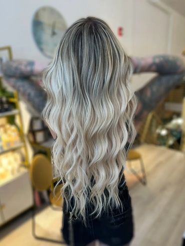 Full highlight, balayage, babylight etc. with all over color in between. Does not include blow-dry